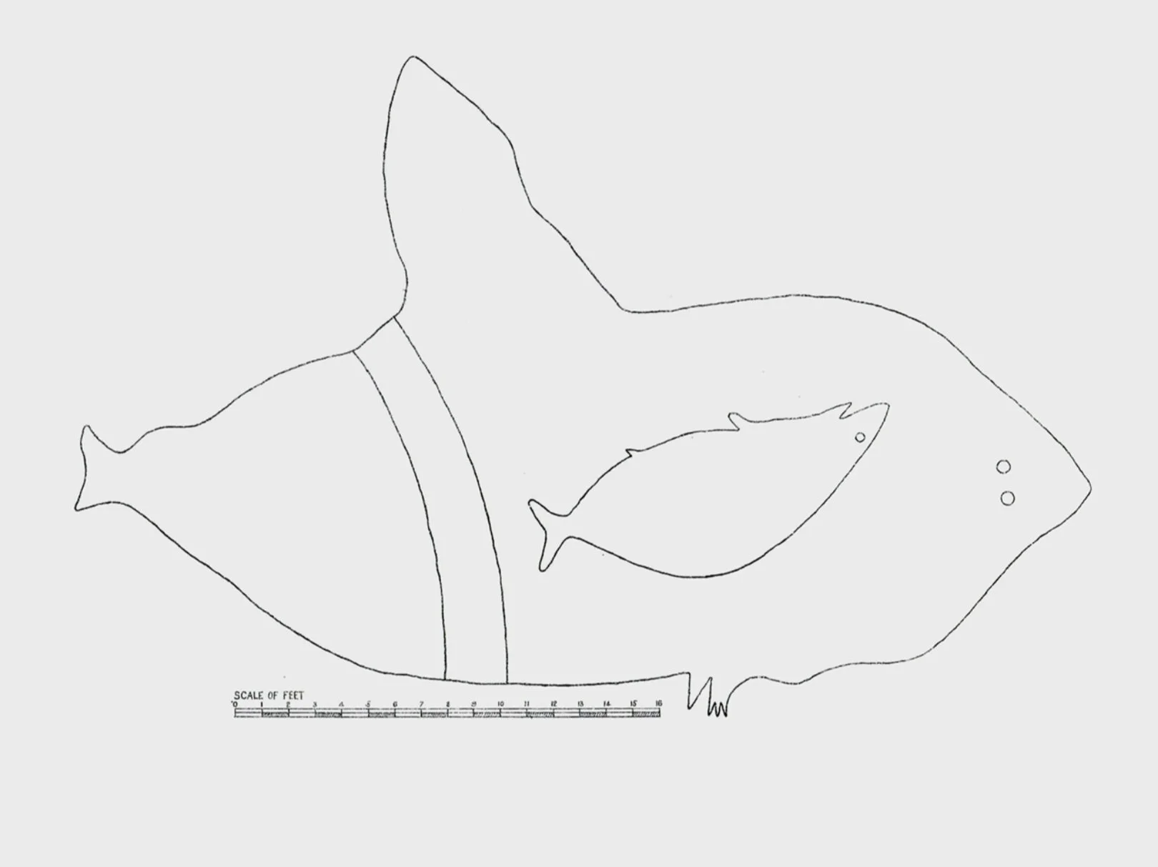 This carving of a burriburri mother and calf engraved on the rocks at La Perouse was the basis for the carving at Prince of Wales Hospital.