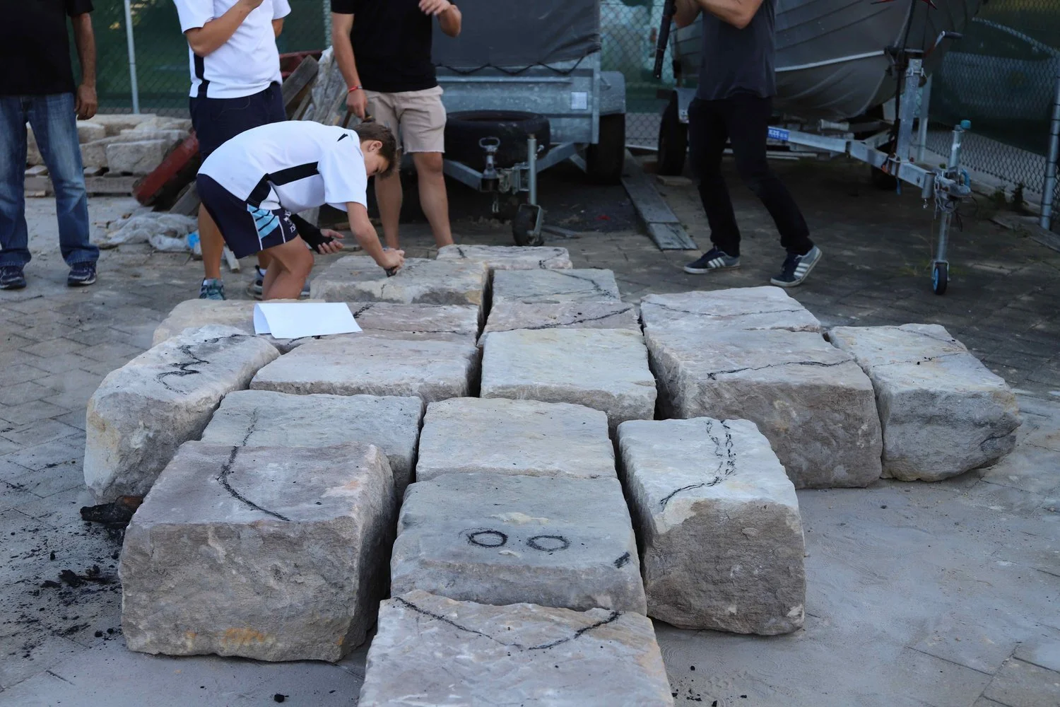 The carved blocks are foundations from the nineteenth-century house, known as The Willows, which stood on the site. They were excavated by archaeologists prior to the development of the new hospital building.