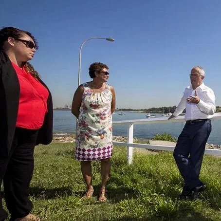 Marcia Ella-Duncan and Carrine Liddell meeting with former Prime Minister Malcolm Turnbull at La Perouse.