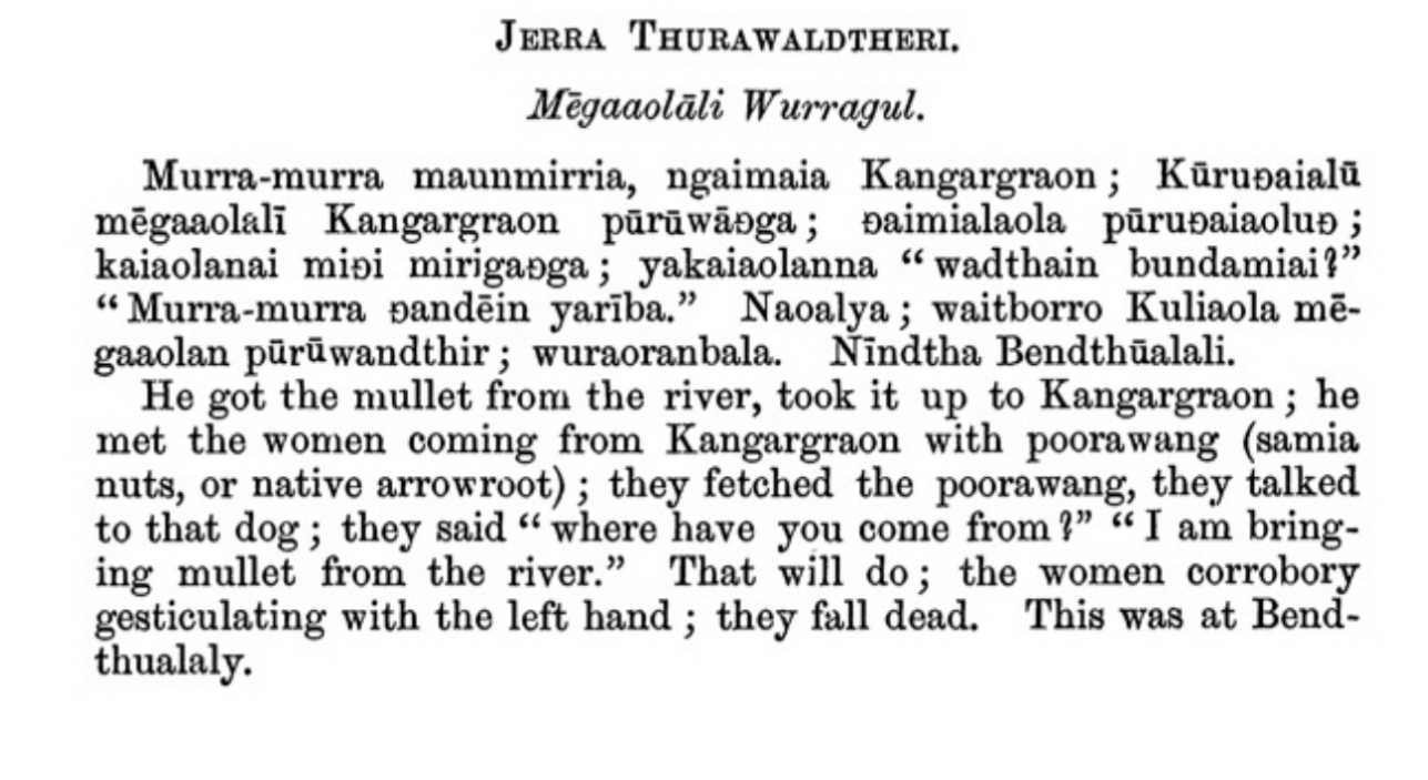 Extract showing wuraoranbala (warawaranbala) from ‘Specimen of Native Australian Languages’, Journal of the Royal Anthropological Institute of Great Britain and Ireland 1874